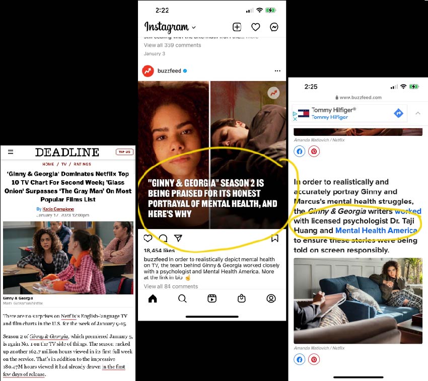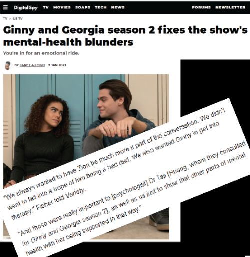 The important work as a psychology media consultant, Dr. Taji has been doing to consult on Ginny & Georgia has been highlighted in several high-profile magazines and news outlets, such as this piece from Variety. You can read more about her other media appearances here where she discusses mental health.